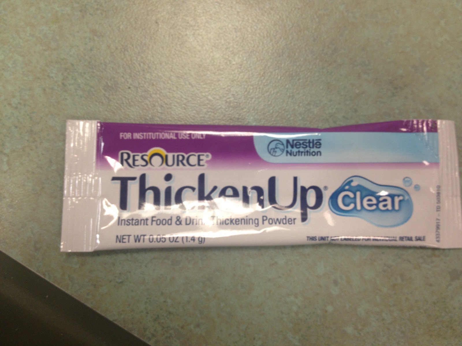 Going to conferences, particularly, the ASHA Convention, there are samples of thickener to go around. Nestle Nutrition also provides samples of ThickenUp free of charge. I decided that one day I would mix these samples with water, using the same container and method to mix, the same water and thicken the water to nectar consistency, just to see the variation.